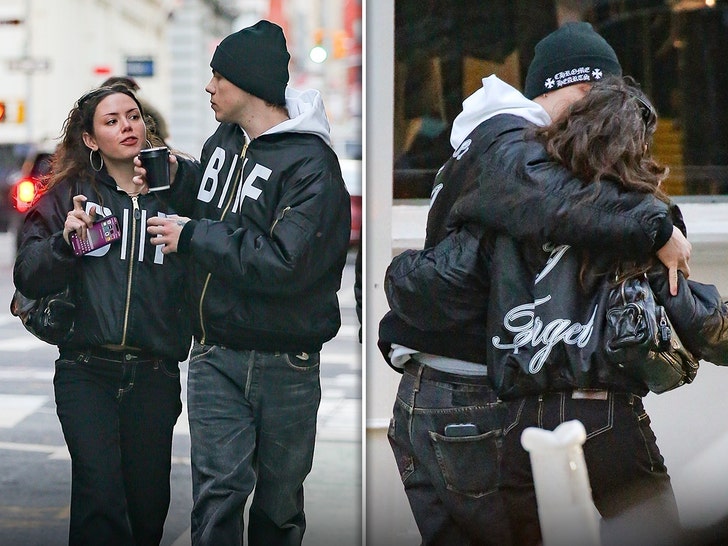 Check it out ... TKL leans in to smooch Sophie on the side of her head -- and his arm is wrapped tightly around her back as they stride down the street.